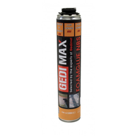 Bouwdepot Lijmschuim NBS is een 1-komponent PU schuim voor het verlijmen van onder andere polystyreen isolatiepanelen met een pistool.