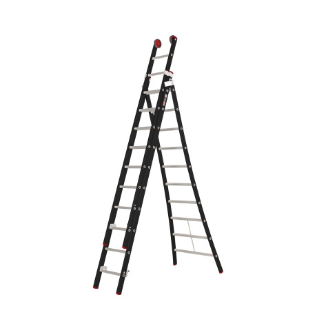 Professionele 3-delige ladder die voldoet aan de veiligheidsnormen voor aannemers en welke tevens geschikt is voor particulieren die veiligheid als hoogste prioriteit aanzien.