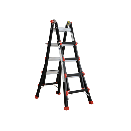 Multifunctionele telescopische ladder die voldoet aan de veiligheidsnormen voor aannemers en welke tevens geschikt is voor particulieren die veiligheid als hoogste prioriteit aanzien.
